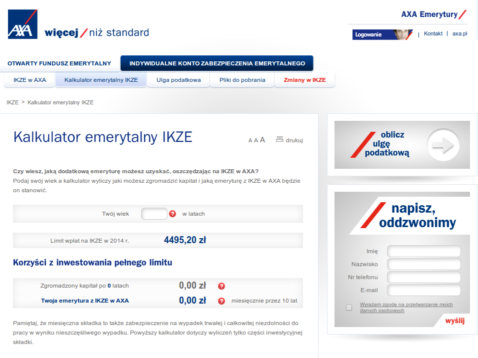 Dla AXA stworzyliśmy kalkulator emerytalny, a także wprowadziliśmy liczne poprawki i modyfikacje do strony ofertowej.