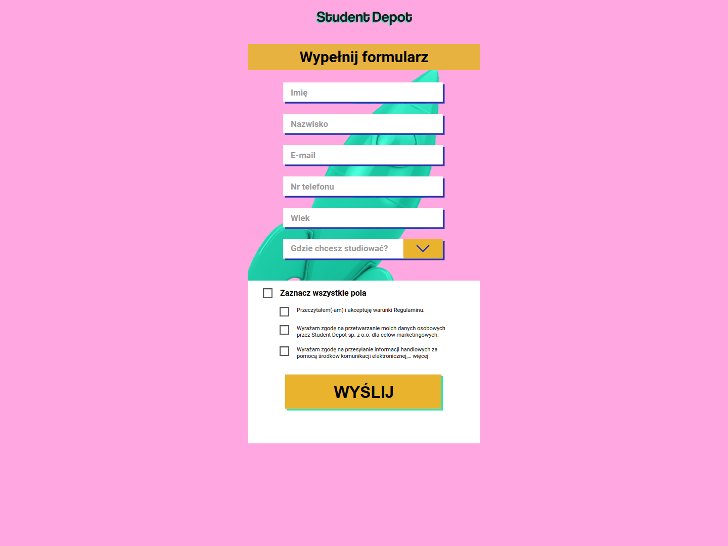 Stworzona przez nas od podstaw strona konkursu dla Student Depot Official, wykorzystująca innowacyjny system zgłoszeń oraz powiadomień za pośrednictwem DirectMessage w Instagramie.